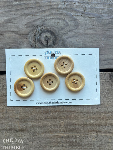Vintage Wood Buttons - Set of 5 Classic Wood Buttons - 23mm (1 1/8 Inch)